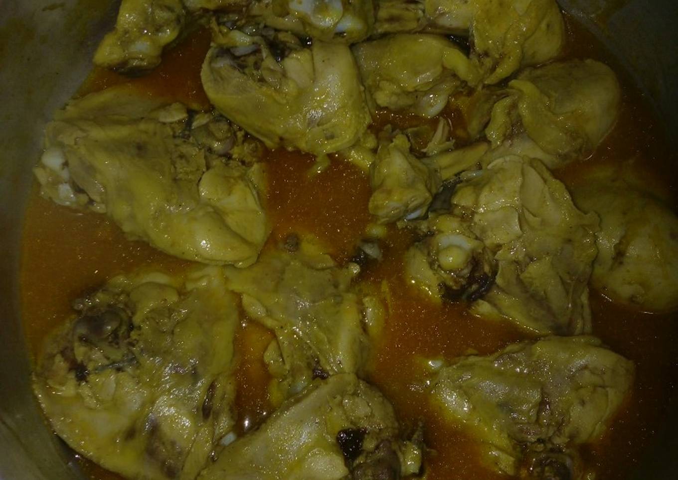 - Ahora ya bien empapadas las pzs del pollo en una olla las dejaremos por una hora metiendolas al refrigerador yo las deje 4 horas por que tuve el tiempo