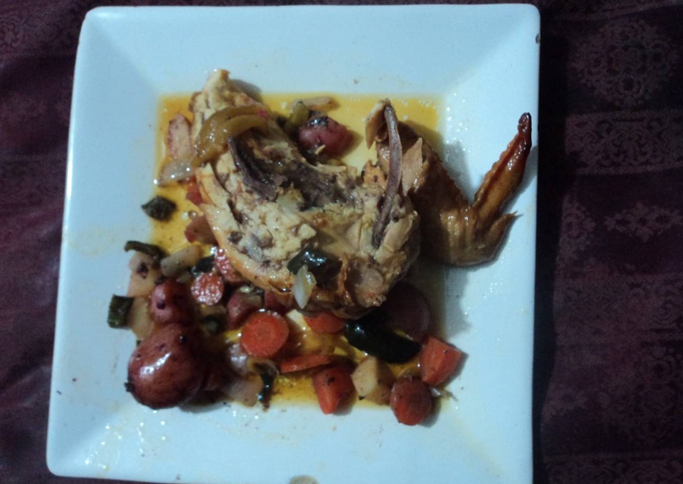 - Embarramos una cazuela de barro con la mantequilla en el interior, ponemos al luego con las verduras y el pollo troceado a cocer a fuego bajo por cuarenta y cinco minutos, apagamos dejamos reposar y servir el pollo caliente.