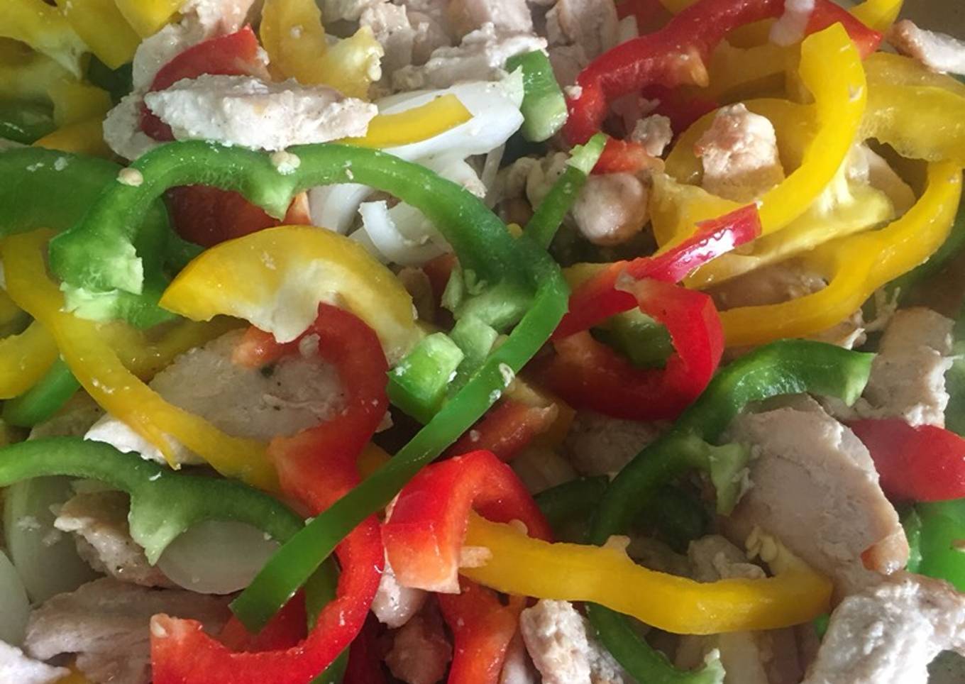 Steps to make to make Fajitas de pollo con 3 pimientos