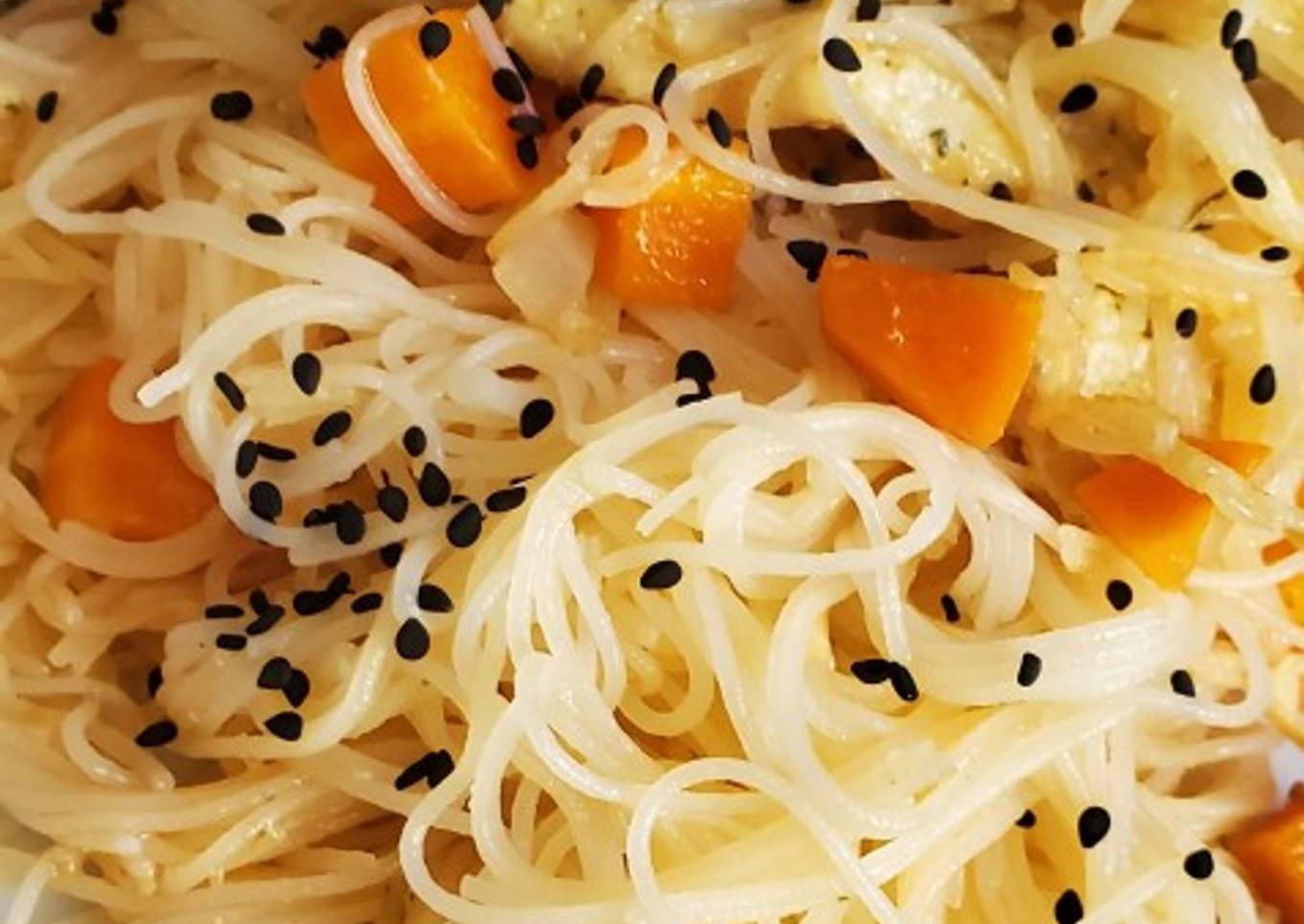 Fideos de arroz con pollo